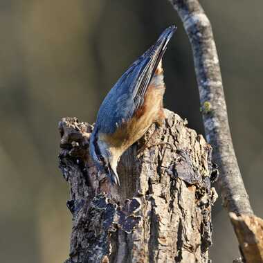 Sitelle torchepot, ayant repéré une mangeoire aménagée, dans mon jardin.