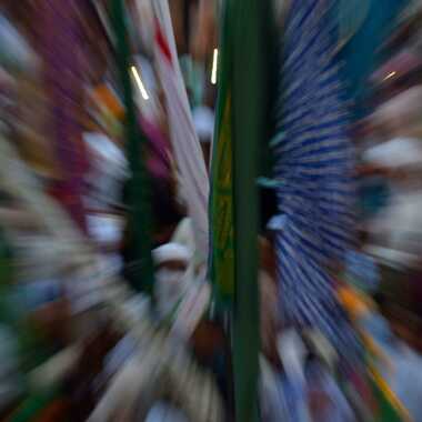 Au cœur des célébrations religieuses de Timimoun, cette image illustre l'énergie mystique des marabouts, symbolisée par les banderoles qui ornent la fête.