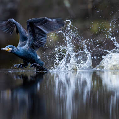 Grand cormoran photographié au lever du jour sur un petit étang de Sologne