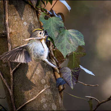 Roitelet à triple bandeau, pas plus gros qu'une feuille de lierre .