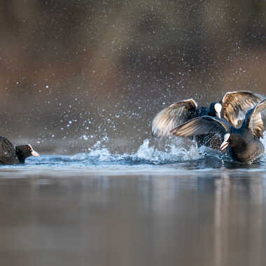La saison des amours approche chez les Foulques Macroule les combats d'intimidation se multiplient sur l'étang.