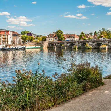 Douce alchimie de bois, de pierre et d’eau, voici depuis la rivière, Auxerre, ville d’Art et d’Histoire.