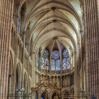 Le chœur, construit au-dessus de la crypte romane, fut commencé vers 1215, selon un plan similaire à celui d'une autre église bourguignonne, la cathédrale de Dijon . L'élévation comporte trois niveaux : de grandes arcades avec des piliers en bas ; un étroit triforium, ou passage, au-dessus, avec des arcs sans fenêtres et une décoration par de fines colonnettes ; et au niveau supérieur, des fenêtres à double lancette sous des rosaces circulaires, avec un étroit passage le long du mur à leur base.