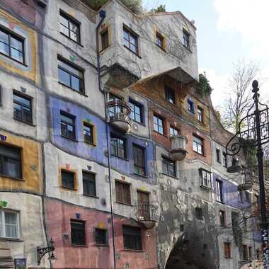 Quartier du à l'architecte Hundertwasser adepte des lignes courbes façades trottoirs chaussées rien n'est droit