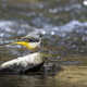 Chevrette (femelle de chevreuil) photographiée bondissant dans une prairie sous une averse de neige