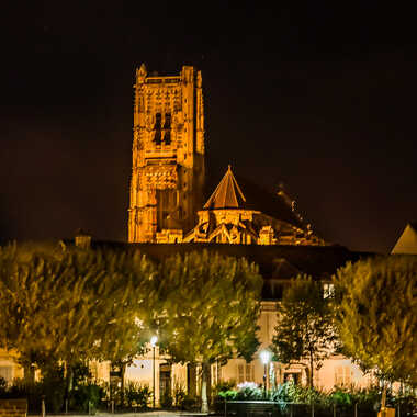 La cathédrale Saint - Étienne d'Auxerre est une église catholique romaine dédiée à saint Étienne , située à Auxerre , en Bourgogne , en France. Elle a été construite entre le XIIIe et le XVIe siècle, sur le site d'une cathédrale romane du XIe siècle, dont la crypte se trouve sous la cathédrale. [ 1 ] Elle est connue pour les fresques carolingiennes du XIe siècle trouvées dans la crypte, et pour ses grands vitraux . [ 2 ] Depuis 1823, elle est le siège d'un diocèse uni à celui de la cathédrale de Sens