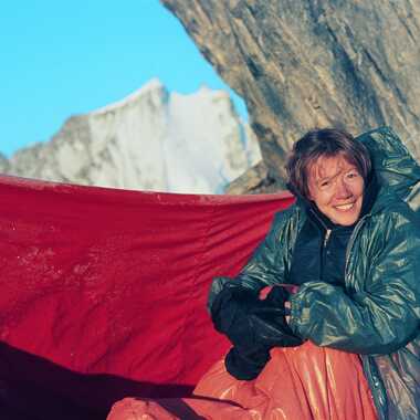 Ma sœur en bivouac au pied de la Tour Ronde (Vallée Blanche)