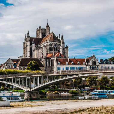 Douce alchimie de bois, de pierre et d’eau, voici depuis la rivière, Auxerre, ville d’Art et d’Histoire.