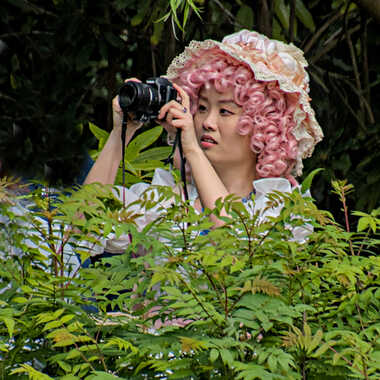 Jeune femme costumée qui se faisait photographier en prenant des poses diverses...