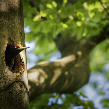 On a repéré un couple de Pic noir, la petite famille devrait s’agrandir bien tôt. Prise dans un bois des environs de Liège