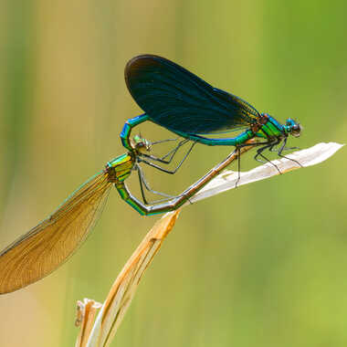 Caloptéryx virgo (anciennement l'agrion vierge) sous-ordre des zygoptères ou demoiselles, qu'un seul genre en Europe.
