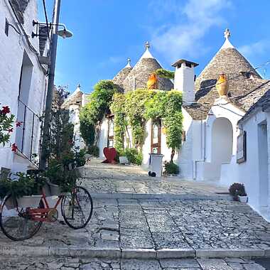 ...dans la région des Pouilles en Italie, Alberobello est connue pour ses trulli, des maisons en pierres blanchies à la chaux et aux toits coniques.