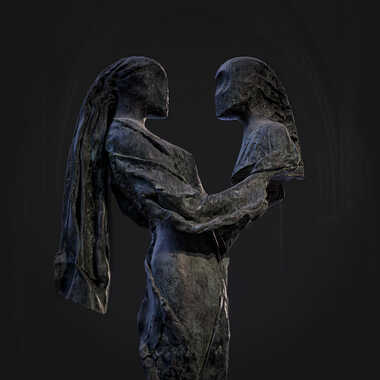« C’est une femme tenant un portrait au visage blessé qui ressemble au sien. Elle nous dit : je relève l’autre qui était à terre, je lui porte toute mon attention, je l’envisage comme un autre moi-même ». D’après des propos de l’artiste Nicolas ALQUIN.