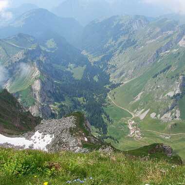 Du sommet vue plongeant sur le hameau et sa vallée.