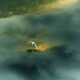 Grande aigrette photographiée décollant d'un petit étang au lever du jour