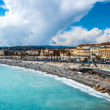 À Nice , la mer est un art de vivre. Toute l'année, la Promenade des Anglais attire les Niçois, notamment grâce à l'ensoleillement généreux de la ville. Mais dès l'arrivée du printemps et la fin de la brise hivernale, les plages privées déploient leurs parasols et installent leurs boutiques, tandis que sur les plages publiques de galets, des serviettes colorées tapissent la dure plage, offrant une protection contre la surface rocheuse.