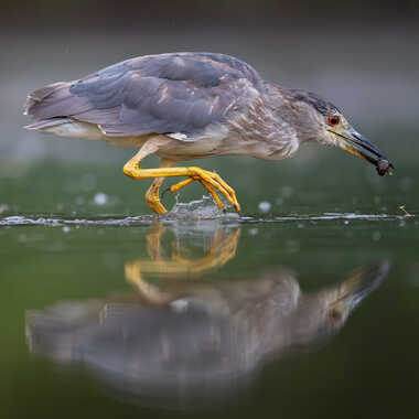 Héron Bihoreau juvénile en action de pêche sur la queue d'un petit étang Solognot.
