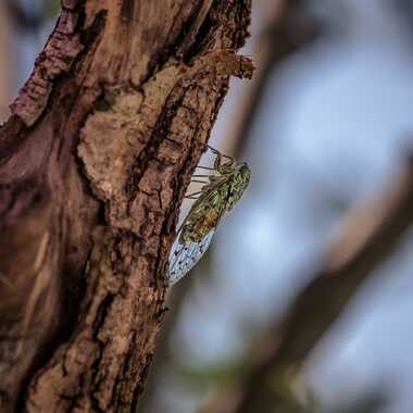 On l'entend bien, mais elle est difficile à observer, cachée derrière la branche de l'olivier.
