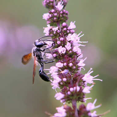 La guêpe noire, aussi appelée guêpe maçonne, est très reconnaissable avec son corps long et svelte. La guêpe maçonne, un insecte inoffensif. La guêpe est qualifiée de maçonne car elle construit son nid à partir de matériaux minéraux de type sable, argile ou terre qu’elle mélange avec la salive.