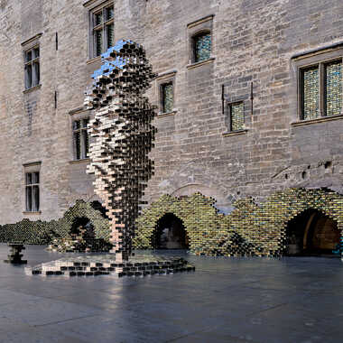 Oeuvre de Jean-Michel Othoniel, l’installation monumentale faite de 10 000 briques et de 3 immenses sculptures de briques d’inox miroir aux formes fantomatiques est le décor d’un spectacle inédit, chorégraphié par Carolyn Carslon
