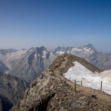 Petit sentier entre la passerelle et le point de vue sur les Ecrins, au sommet des 2 Alpes.
