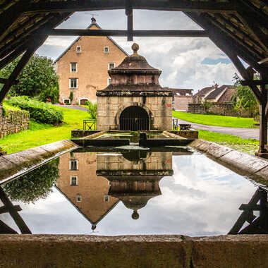 Ses bassins rectilignes d'une vingtaine de mètres s'achèvent sur un édicule de source qui rappelle les toits à l'impériale des églises comtoises du XVIIIe siècle.