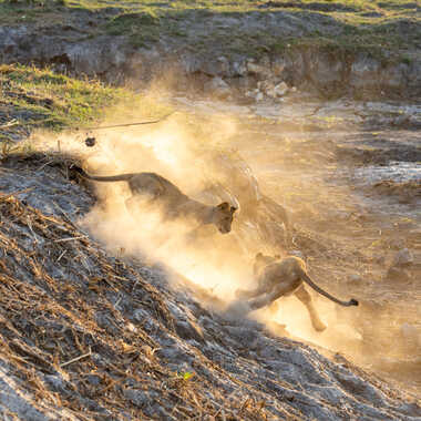 - Mots-Clés Botswana, Linyanti, jeux, lionceau, poussière