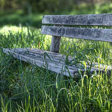 Visiblement voué à l'abandon, ce vieux banc public attaqué par les herbes et les lichens semble vouloir encore profiter de la lumière pour se faire voir...