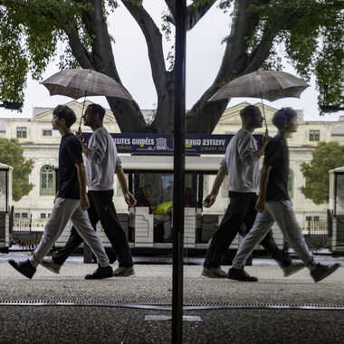 photo prise dans une glace de l'entrée du musée de la romanité à Nîmes
