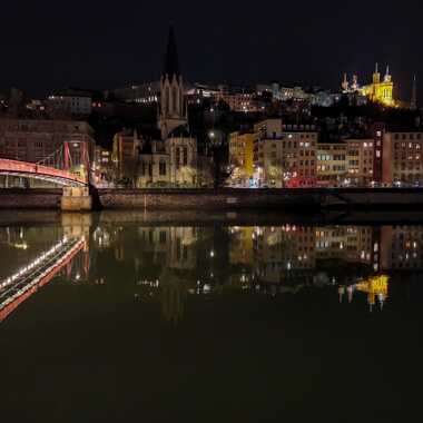 Une promenade sur les quais, la douceur de la nuit, une ambiance, des lumières féériques, et un équilibre sans faille... Le Vieux Lyon vu des quais de Saône