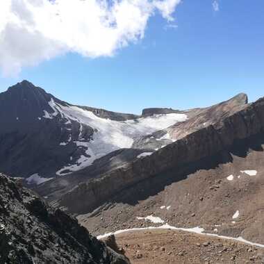Aiguille du Goléon (à gauche) avec le glacier du Goléon moribond. Pris avec smartphone depuis la Pointe Salvador.