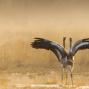 - Mots-Clés cranes grues cendrées oiseaux faune widlife wild jaune brouillard