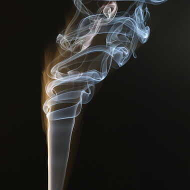 Un bâton d'encens, un fond noir (une nappe suspendue), un flash, une lumière continue pour les zones jaunâtres, et un déclenchement au bon moment (quand la fumée s'enroule régulièrement).