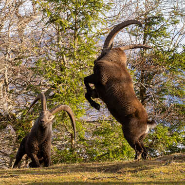 Période de rut des bouquetins au Creux du Van en Suisse.