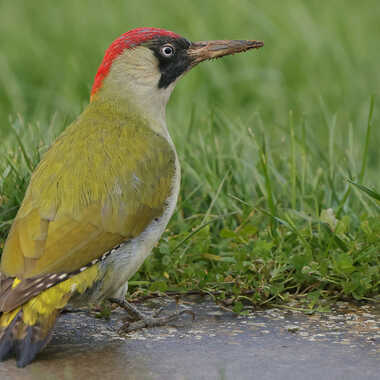 ce pivert est venu après la tempête chercher sa pitance dans ma pelouse ...