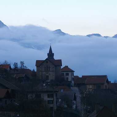 - Mots-Clés Clocher, soir, village, montagne
