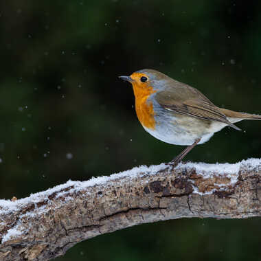 Rouge gorge photographié dans mon jardin sous une petite averse de neige