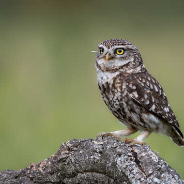 Chevêche d'Athéna photographiée sous affût