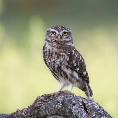 Chevêche d'Athéna photographiée en fin de journée sous affut.