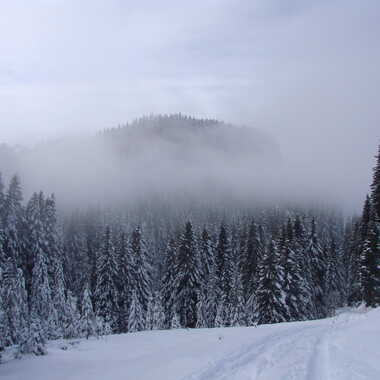 - Mots-Clés Neige, tracesn sapins, brume