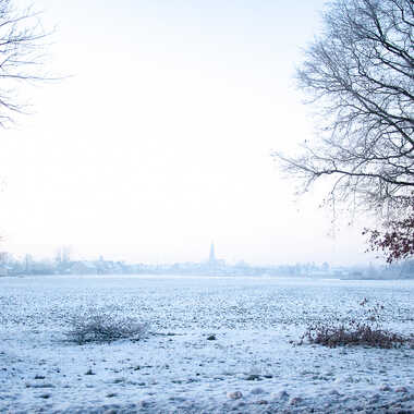 Champ et village enneigés