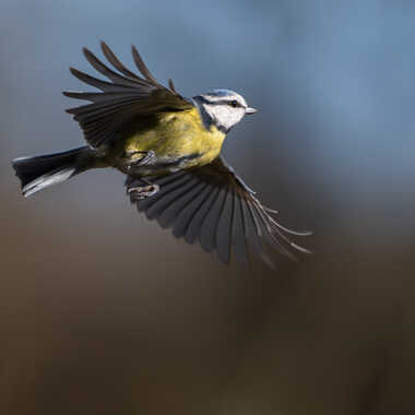 Mésange bleue en vol