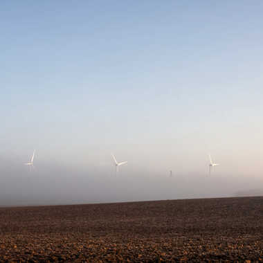 - Mots-Clés brume , éoliennes , champs labouré , couleur matinal
