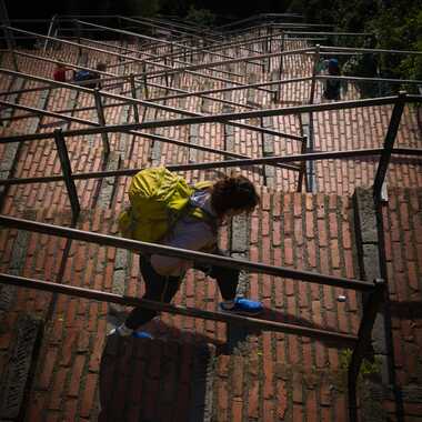 Pour relier la gare au village, un escalier à parcourir rapidement pour ne pas louper le train !