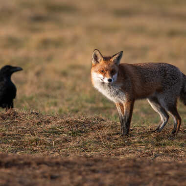 Maitre Renard et maitre corbeau sur la même photo sans montage ni IA.