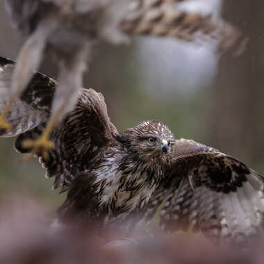 Autour des palombes qui s'envole et Buse Variable, pas vraiment de bagarre mais de l'intimidation.