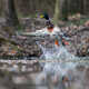 Martin pêcheur photographié dans un bouleau surplombant un petit étang.