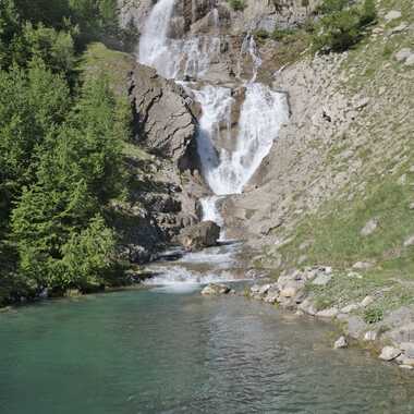 Cascade de Gialorgues de nouveau alimentée après plusieurs années de sécheresse vers 2000 m dans le Mercantour.