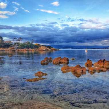 Photo prise dans le golfe d'Ajaccio, sur la plage de l'Isolella, qui doit son nom à la presqu'île que l'on voit à gauche de la photo.