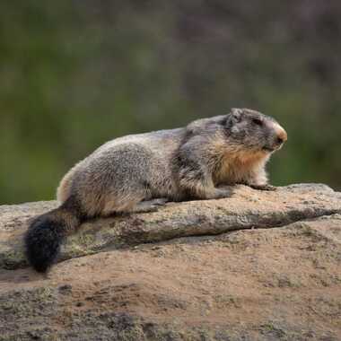 Marmotte se réchauffant sur le rocher et guettant les intrus.